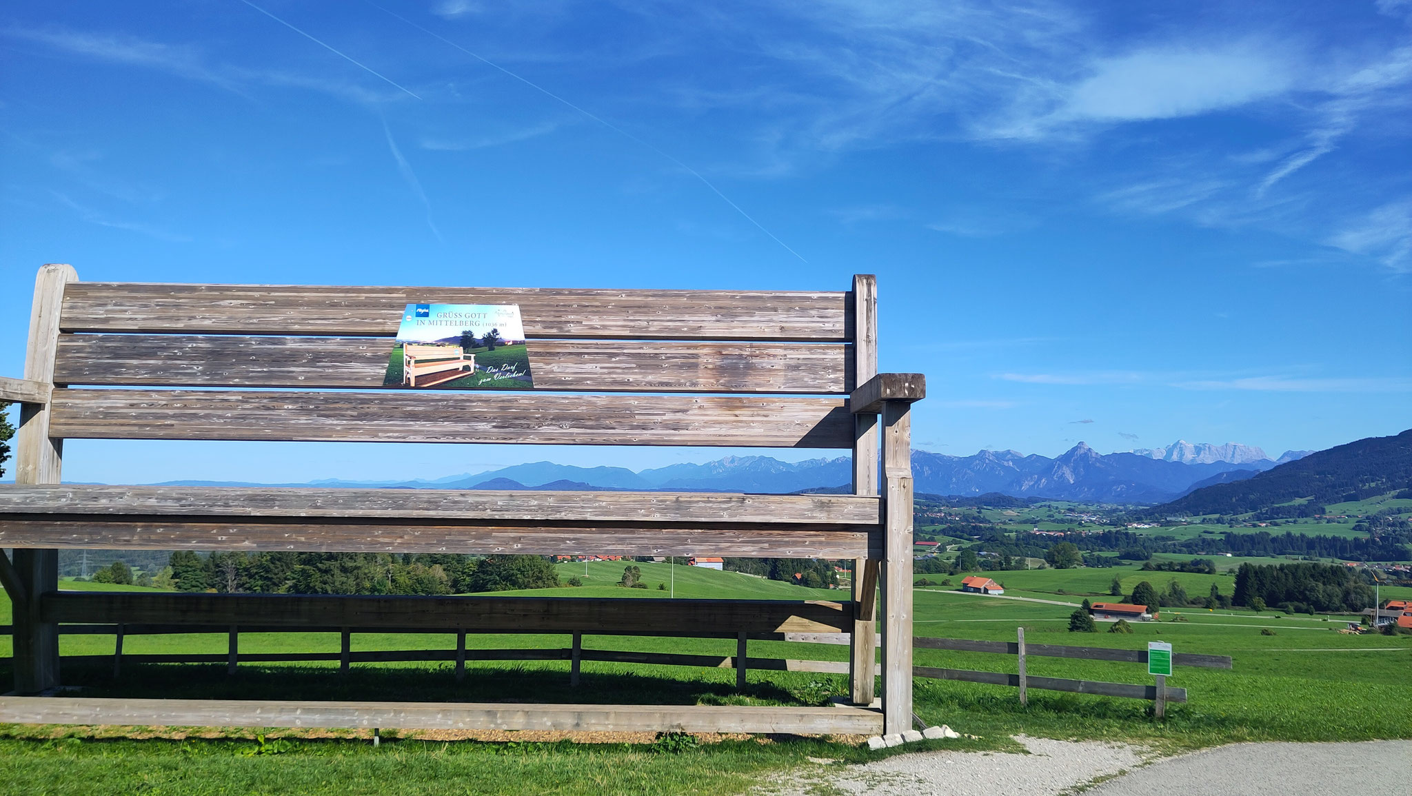 Bei einem Spaziergang auf dem nahegelegenen Panoramaweg wurden wir überwältigt von einer grandiosen Weitsicht, bis hin zur Zugspitze.